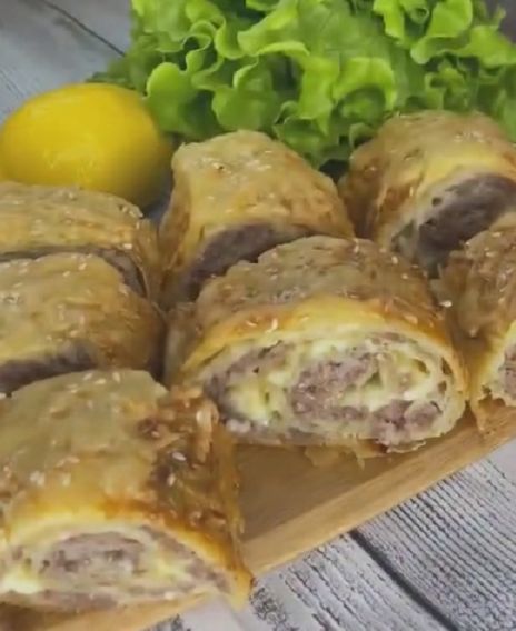 Отправляем рулет в прогретую духовку до 190 С запекаем 30 минут до золо