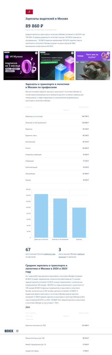 Мне вот просто интересно откуда они эти данные взяли. К примеру, я много статей разобрал по профессии курьер. ЗП курьера через приложения составляет при полной загрузке от 8 000 рублей. Откуда они взяли зп 59 000 рублей? Это даже при 5\2 графике получается что курьер в день зарабатывает 3000 рублей грубо говоря. Остальное получается у него просто левые доходы. Просто насколько я знаю - я не знаю ни одного курьера который бы работал на 60 000 рублей в месяц в доставке. Даже если взять тех, которые работают на чужих машинах - на машинах компании - тот же самый Яндекс Макрет если не ошибаюсь предлагает ОТ 6500 рублей за смену на их машине с их бензином.