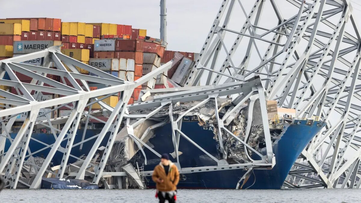 Контейнеровоз Dali, врезавшийся в мост в Балтиморе во вторник утром, имел весьма неоднозначную историю, включающую как минимум одно серьезное раннее столкновение и проблемы с силовой установкой, что, возможно, и послужило причиной его последней катастрофы. Балтимор, у нас проблемы... Каких-либо официальных заявлений, однозначно указывающих на причину, по которой Dali врезался в мост Фрэнсиса Скотта Ки, на данный момент нет. По сообщениям городских властей Балтимора, известно лишь то, что незадолго до столкновения экипаж передал на берег сообщение, что судно потеряло управляемость. На видеозаписи видно, что незадолго до удара на корабле отключилось практически все внешнее освещение. Это может указывать на выход одного или нескольких дизель-генераторов из строя или на проблемы с электрооборудованием, приведшие к обесточиванию судна. Возможно, именно этим и объясняется потеря управляемости. За предельно короткое время от момента обесточивания до столкновения с мостом аварийная схема энерг