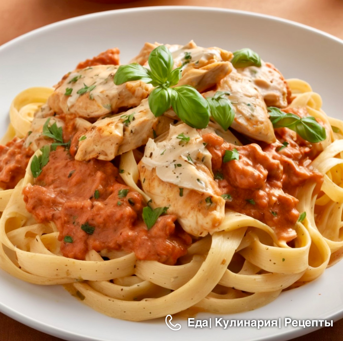 Паста «фетучини» 🍝под сливочно-томатным соусом