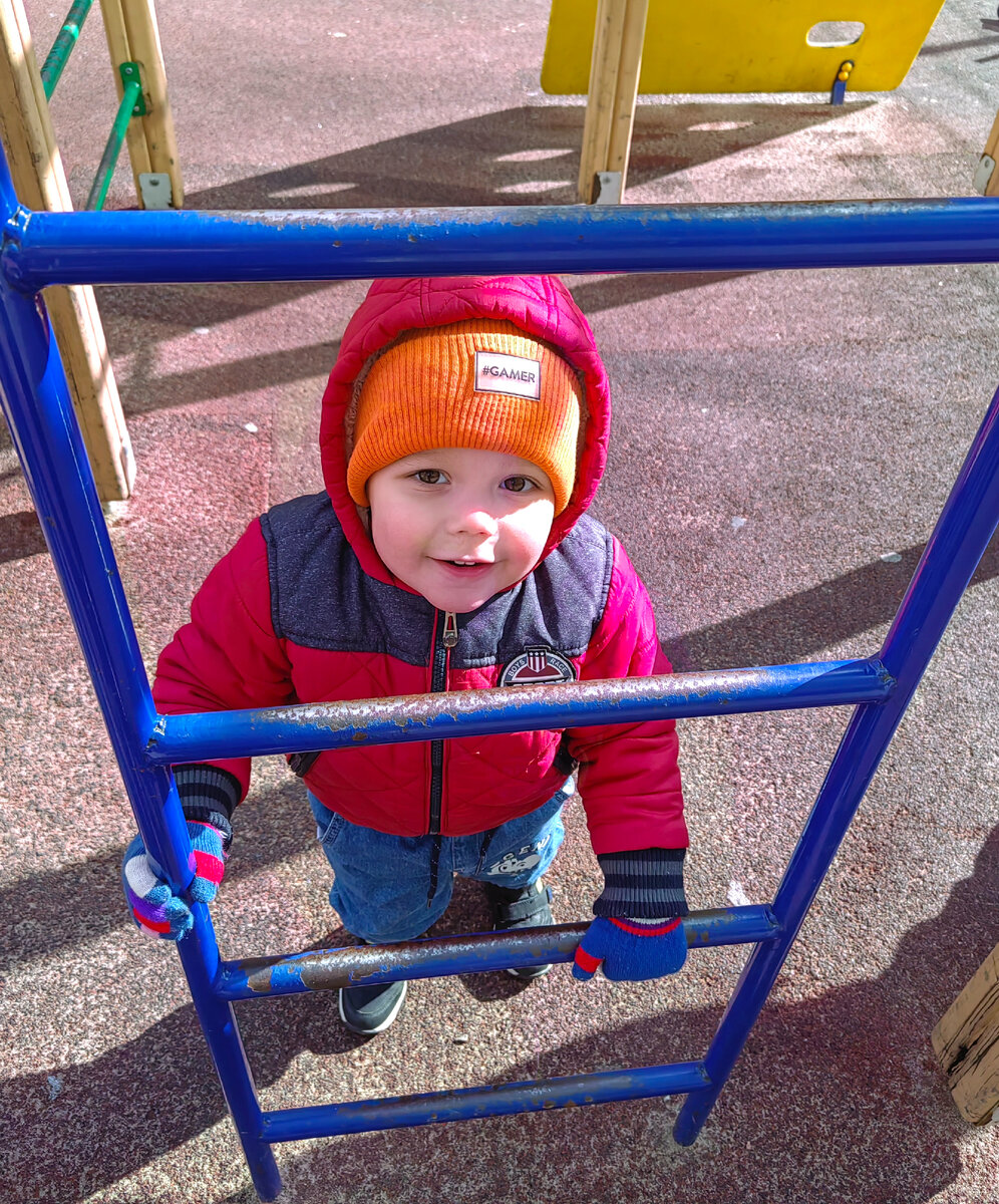 Дорвался до качелей и горок. Я его пониманию - неделю безвылазно просидел в квартире. Тут уж никакие книжки и машинки с пластилинами не интересны. Хочется свободы и удовольствия.