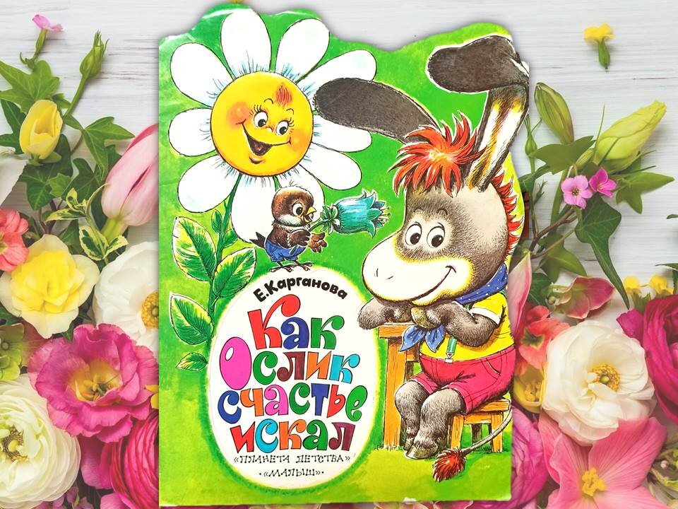 С детства у меня осталось много книжечек в мягких обложках. Они были доступны по цене, занимали мало места и всегда брались с собой в дорогу. Среди них была сказка про Ослика, который искал счастье. Книга создана по мотивам одноименного советского мультфильма 1971 года. Автор сценария Екатерина Карганова заложила в детскую историю философские поиски счастья. По мнению многих критиков, данное произведение хорошо подходит детишкам, с ними можно обсудить поведение героев и поразмышлять о том, что для нас счастье. Сюжет простой: Ослик однажды задумывается, где ему найти счастье. Он приходит в гости к своим друзьям-зверятам, но те тоже не знают, где искать. Вскоре герои встречаются в лесу потерявшуюся девочку, помогают ей вернуться домой. И слышат заветное: "Я так счастлива!". Доброе дело осчастливило и Ослика, и его друзей. Иллюстрации выполнены Анатолием Савченко, прекрасным мультипликатором, папой попугая Кеши, Карлсона и Вовки в тридевятом царстве. Можно читать с детишкам с 2-3 лет, как