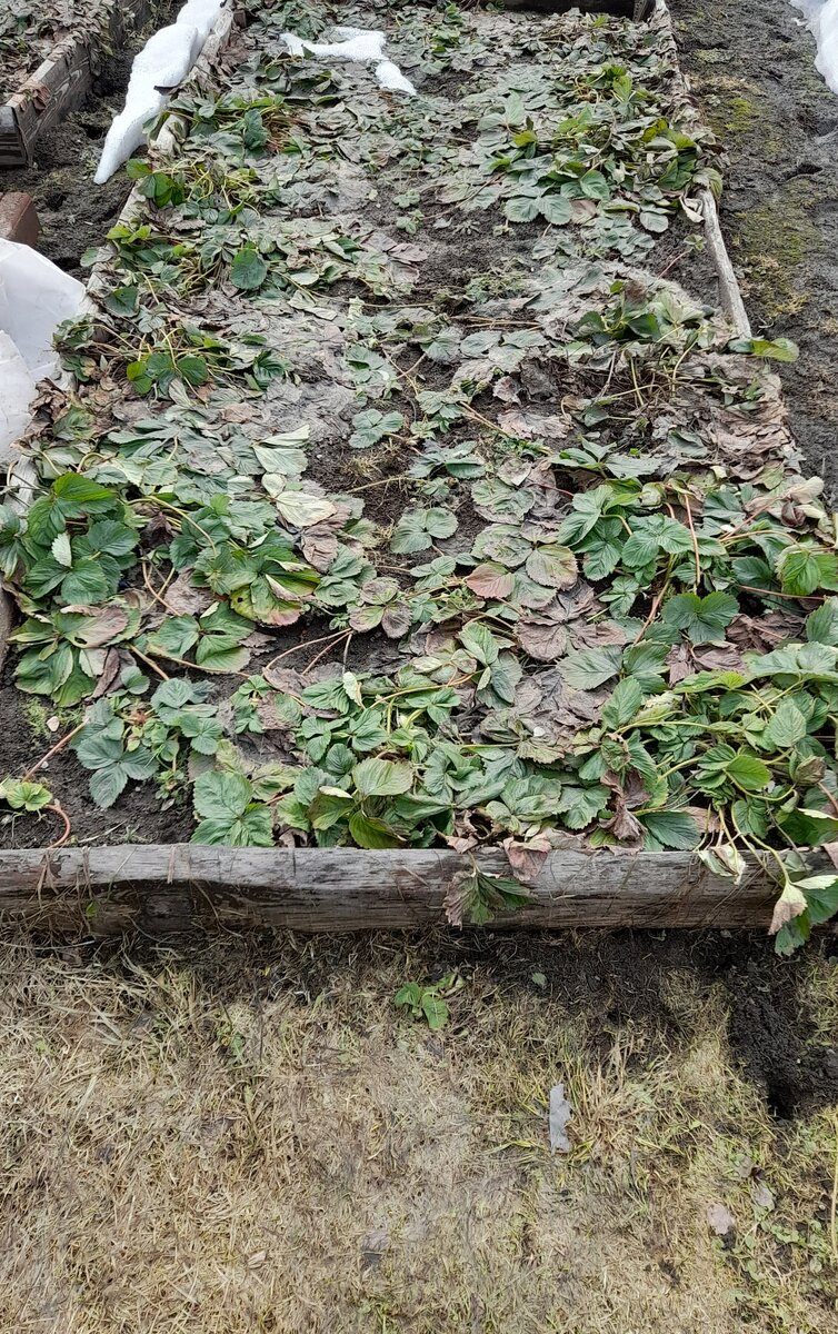 Снег тает прямо на глазах! За два дня растаяло больше, чем за всю прошлую неделю. Ещё довольно много вдоль забора с северной и западной сторон, за теплицей и немного на дорожках между высокими грядками. Если неделю назад ноги в снегу утопали, то теперь боюсь в земле завязнуть или, поскользнувшись, красиво растянуться на какой - нибудь грядке с клубникой. Кстати, ремонтантная уже вся оттаяла.