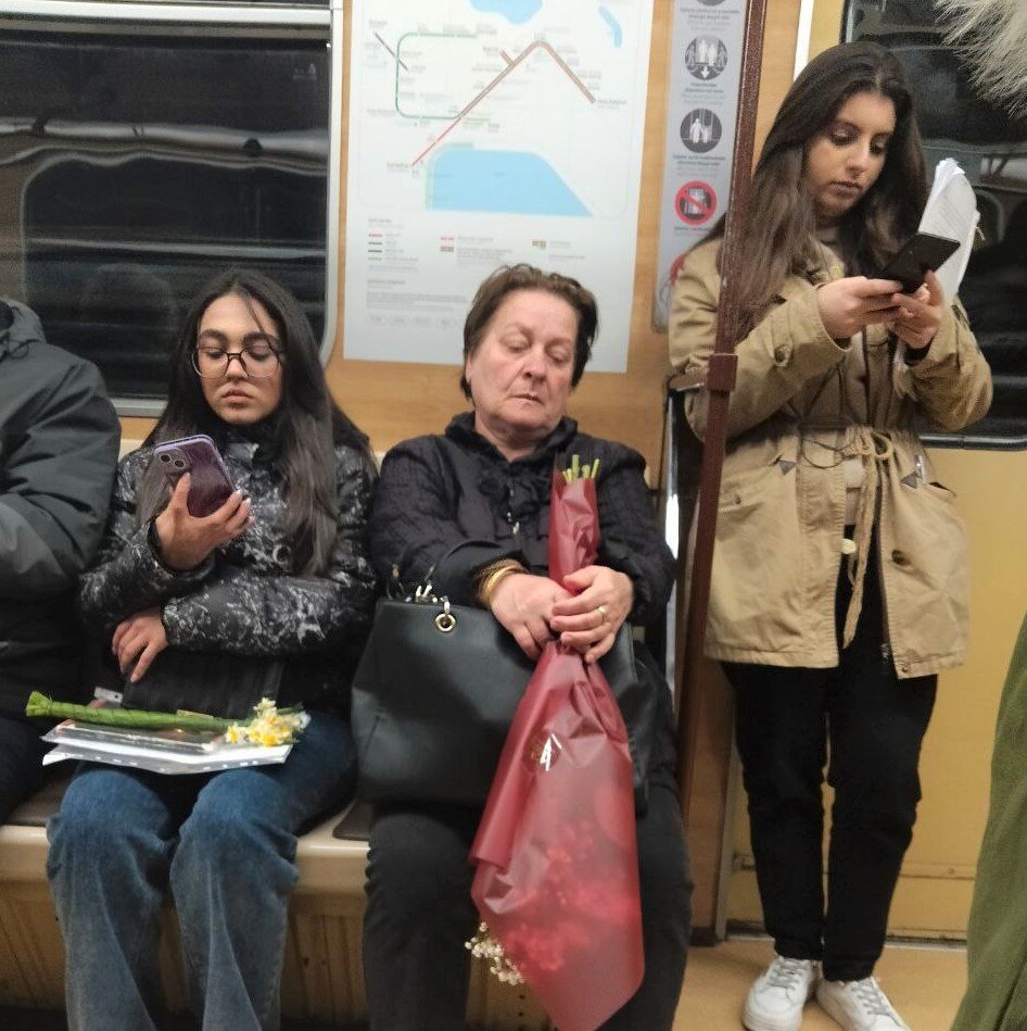 В воздухе рассыпана солнечная пыльца. В подземных переходах играет восточная поп-музыка. У стен старого города в холодный мартовский день летают попугаи. Говорят, один человек хотел их разводить, но то ли мафия, то ли чиновники строили ему разные препятствия. Тогда человек пришел к стенам крепости и выпустил всех птиц. Может быть, это городская легенда, может быть, правда. Или то и другое сразу, как бывает на востоке. Захожу на станцию Ичеришехер. В стеклянном вестибюле, пронизанном светом, я не знаю, как оплатить проезд. У автомата два студента покупают мне карточку, кладут на нее свои манаты и исчезают в праздничной толпе. Этот город такой заботливый, и забота его ненавязчивая. Спускаюсь в метро. Пусть мне не подарили цветы, я одна в Азербайджане, но я чувствую себя так, как будто подарили. Золотая пыльца общей весны летит и на меня. Мужчины Баку, кажется, не забыли ни одну женщину. В вагоне и на станциях - почти все с букетами. Тюльпаны, розы, пучки нарциссов со стебельками, туго п