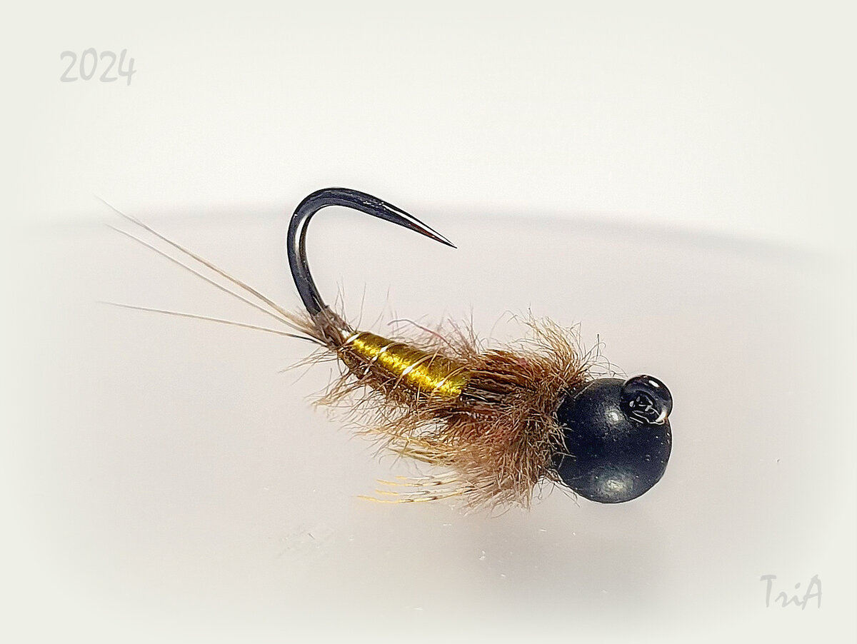 Все участники вяжут на безбородочном джиговом крючке, любой формы, любого производителя на №12 (крючки могут отличаться по размеру). Должна быть обязательно использована вольфрамовая огрузка (головка) любого размера, любого цвета, любой формы. Основное требование к мушке, она должна быть «на максималках»))) …. Максимально сложной, максимально красивой, максимально сбалансированной в применённых материалах. Heptagenid Nymph Jig Head Крючок(hook) - FULLING MILL 5045 Jig Force Black Nickel #12 Нить(thread)– Veevus 12/0 Головка(head)- FULLING MILL 3.8 Matte Black (slotted tungsten beads) Кончик(tаg) – серебристый Mylar Tinsel X-SM Хвостик(tail) – бордки Coq de Leon Оребрение(rib)– серебристая проволока Hends Жабры(gills) – коричневые бородки пера страуса Тело(body)– бледно зелёный шёлк Danvilles Спинка(thorax cover)– бородки махового пера( гусь, фазан т.п.) Грудка(thorax) – смесь даббингов Ножки(legs)– перо куропатки Воротник(collar) –бородки п