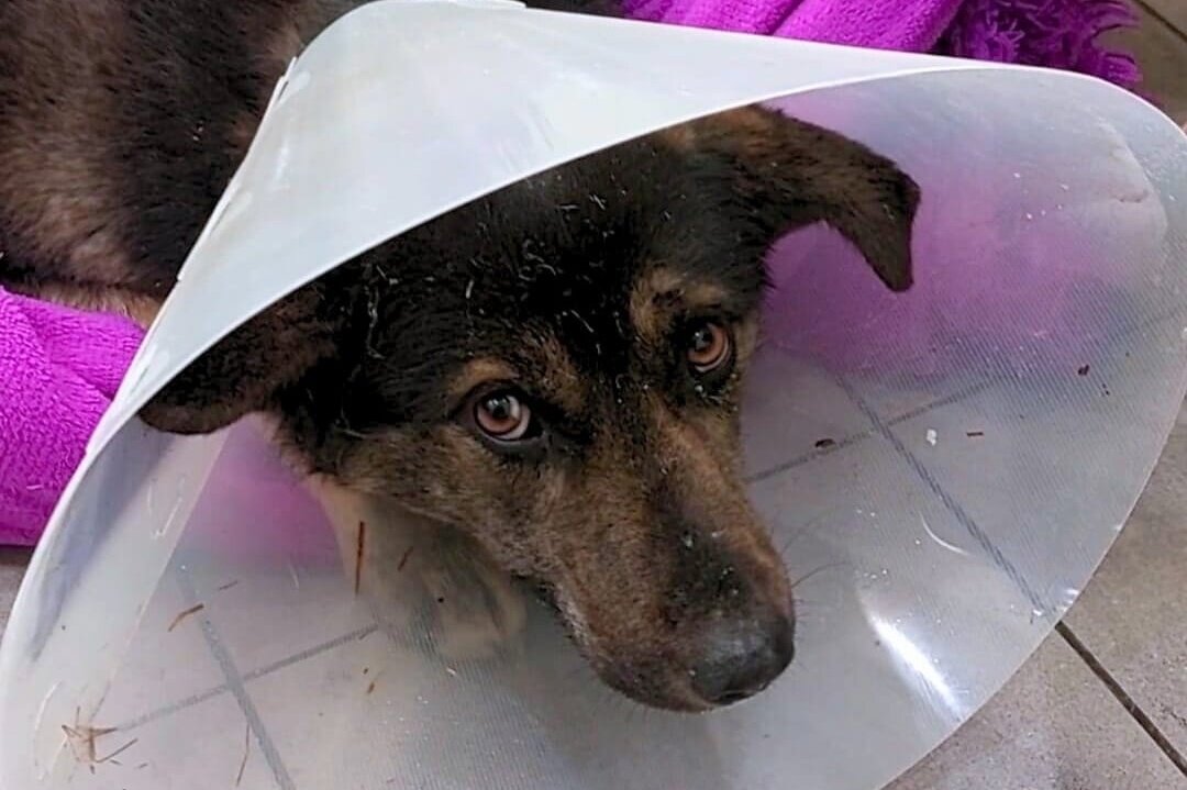 Собаку спасители приняли к себе и готовы в случае восстановления её у себя и оставить.