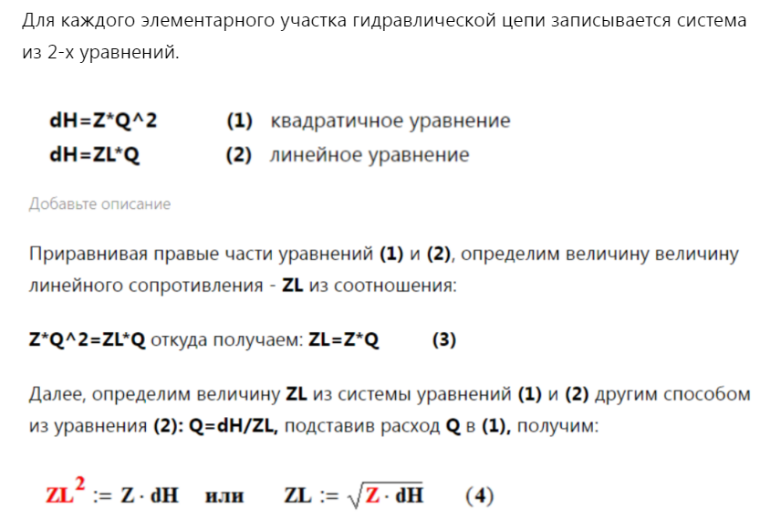 Более подробная информация об этом методе можно прочитать в опубликованных ранее статьях (см. л.1-3). Ниже приводится вывод итерационной формулы на базе которой выполняется весь процесс гидравлического расчёта.