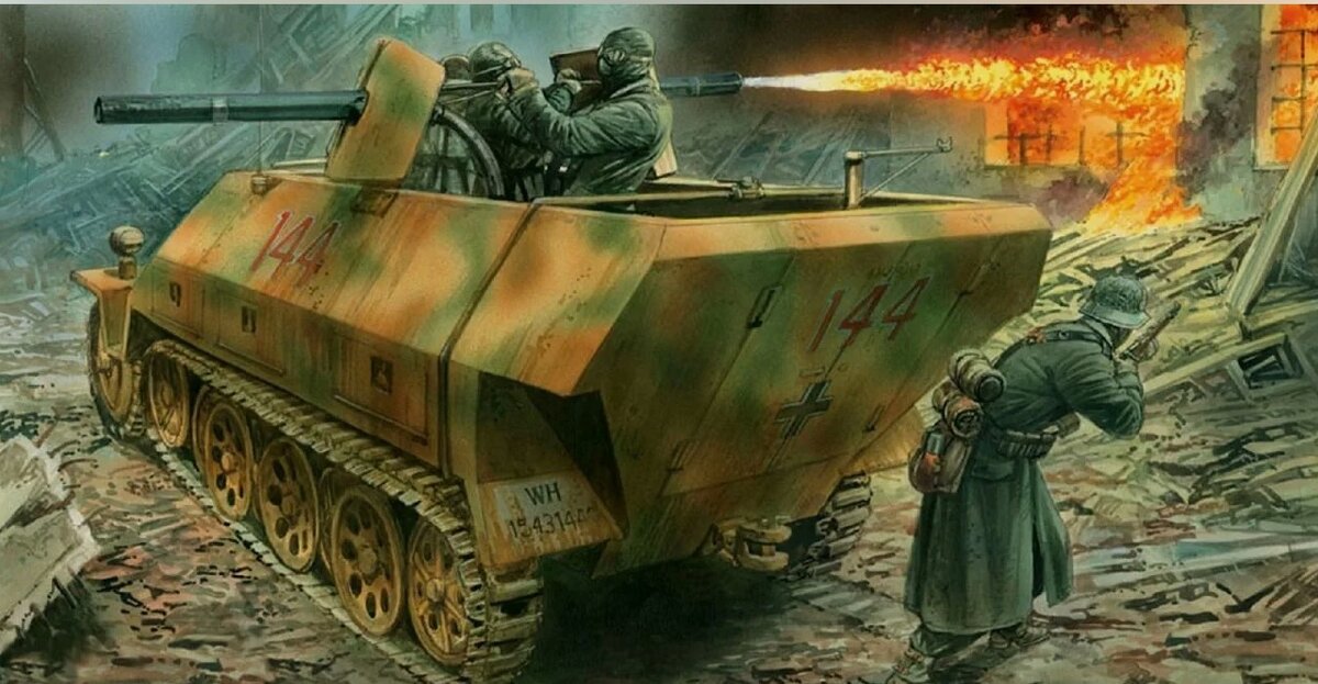 Еще древние греки использовали горючую смесь для поджигания кораблей противника. Боязнь огня сидит в человечестве с древнейших времен на генетическом уровне. Я уже рассказывал о нашем огнеметном танке, теперь поговорим об одном образце техники противника.