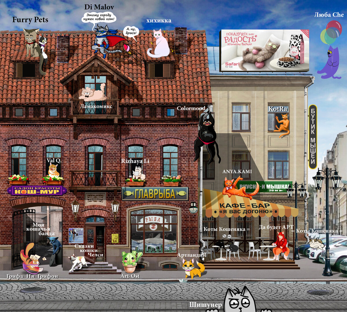 Знали ли вы, что 27 марта отмечается День мартовского кота? Я бы не знала, если бы не идея @KotRa_коты,рисунки,комиксы создать творческий коллаб, посвященный этому празднику. Так у нас прошла вечеринка на Кошачьей улице: А ниже можно подробно рассмотреть всех котиков, которые принимали участие. Котяктус от Art-Ost Хостес от ANYA. KAMI Книголюб от Rizhaya Li Интеллигентный кофеман от Да будет ART! Модник от Colormood Герой от Di Malov Милая парочка от Furry Pets Дружелюбный сосед от KotRa Любительница шикарных авто от = Коты Кошеняка = И еще любители рыбов от = Коты Кошеняка = Милашка от АртландиЯ Кот, который не ест и не портит цветы, но это не точно от Val Q Самый быстрый почтальон от Грифа_Ня_Грифон Котолама от Ламакомикс Летящий от Люба Che Уважаемый кот на районе от Моя кошачья банда Очаровательная кошечка от хихикка рисует Любопытный котик от Шишунер Важная кошка от Сказки кошки Челси А какого котика вы бы взяли к себе домой?