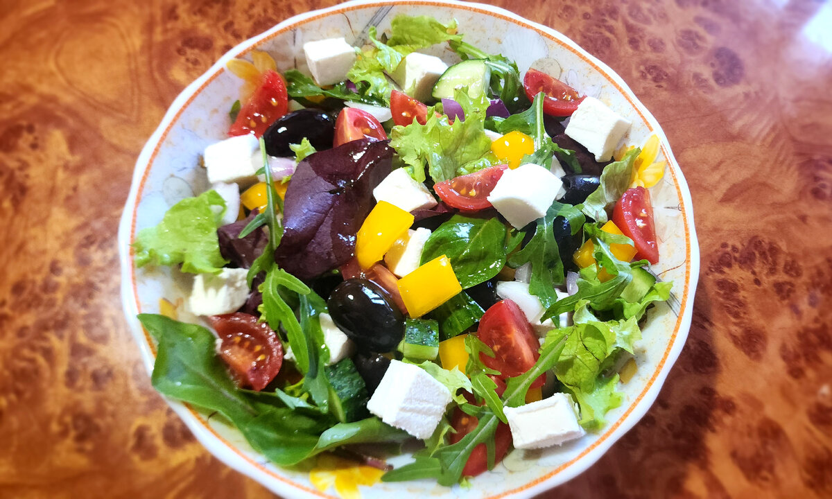Вечер среды. Бегу в магазин за ингредиентами для "Греческого салата", который собралась приготовить на ужин. Звонит телефон. Оказалось, что бывшей жене брата нужно отогнать машину на ремонт в Харцызск, а заодно и обновить весенний гардероб, и она попросила оставить у нас племянницу, так как в школе каникулы. Мы с мамой тут же засуетились. Бананы, йогурт, сделать сырники, утром любимую гречневую кашу сварить со снежнянской сарделькой, очень вкусной. И огурчик обязательно. Малявка в гости приходит и первым делом бежит на кухню. Дома специально не завтракает. Вот как нужно правильно ходить в гости. Лайфхак :) Пока мама жарила сырники, я готовила салат. Я его вообще не очень люблю, но целый день не могу выбросить из головы. Я сюда и микс добавила, что бы он выглядел максимально полезно и по-летнему. Вот такой яркий получился. И, наверное, впервые "Греческий салат" мне понравился. Доросла до него :) Божественно вкусный ужин. Утром мама ушла на работу, а я поставила гречку на плиту и уст