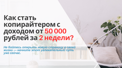 Регистрируйтесь на бесплатный вебинар «Как стать копирайтером и начать зарабатывать от 50 000 рублей удалённо» по ссылке.