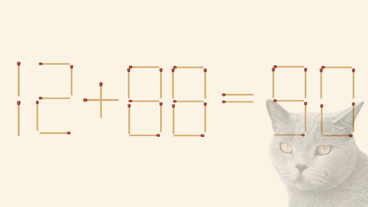 12 + 88 = 90? Передвиньте 1 спичку, чтобы выражение стало верным