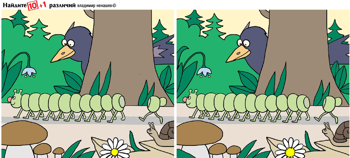 Найдите 10+1 различие в рисунке-загадке. Лесные случаи на свежем воздухе.Тест на внимание!