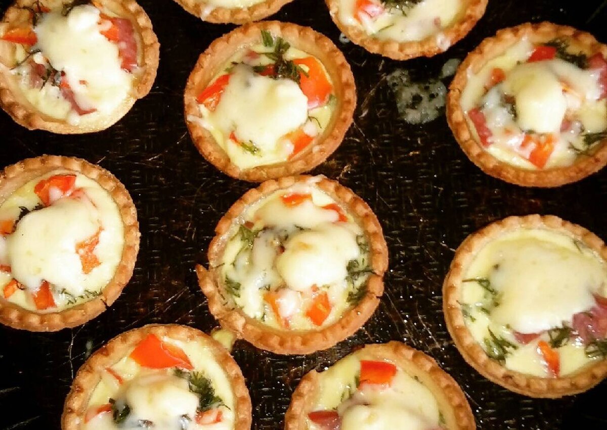 Пиццы в тарталетках готовятся в маленьких, удобных формочках. Ингредиенты используются обычные – помидоры, колбаса, томатный соус, твёрдый сыр и солёный огурчик, который добавляет кислинку. Готовые тарталетки небольшое время запекаются в духовке, чтобы придать им дополнительный хрустящий эффект. Это отличный вариант для детского праздника, фуршета, а также закуски на каждый день. ---------------------------------------------------------------------- Ингредиенты: Тарталетки из песочного теста - 11 шт. Помидоры черри - 100-130 г. Колбаса копченая (нежирная) - 100 г. Огурцы солёные - 40 г. Сыр твёрдый - 100 г. Томатный соус - 90 г. ---------------------------------------------------------------------- Кол-во порций: 6 Время приготовления: 20 мин. Категория: Закуски Тип блюда: Горячие закуски ---------------------------------------------------------------------- Приготовление: 1. Духовку разогреваем до 180 градусов. 2. Колбасу нарезаем маленькими кубиками. 3. Сыр натираем на средней тёрке.