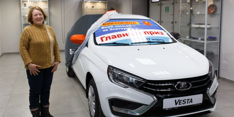 Совершенно новенькая, вся блестит. LADA Vesta, перевязанная красным бантом, уже готова выехать из салона официального дилера под управлением своего хозяина, а вернее хозяйки. Обладателем главного приза стала жительница Златоуста Светлана Ряснова. Опыт вождения у неё имеется.