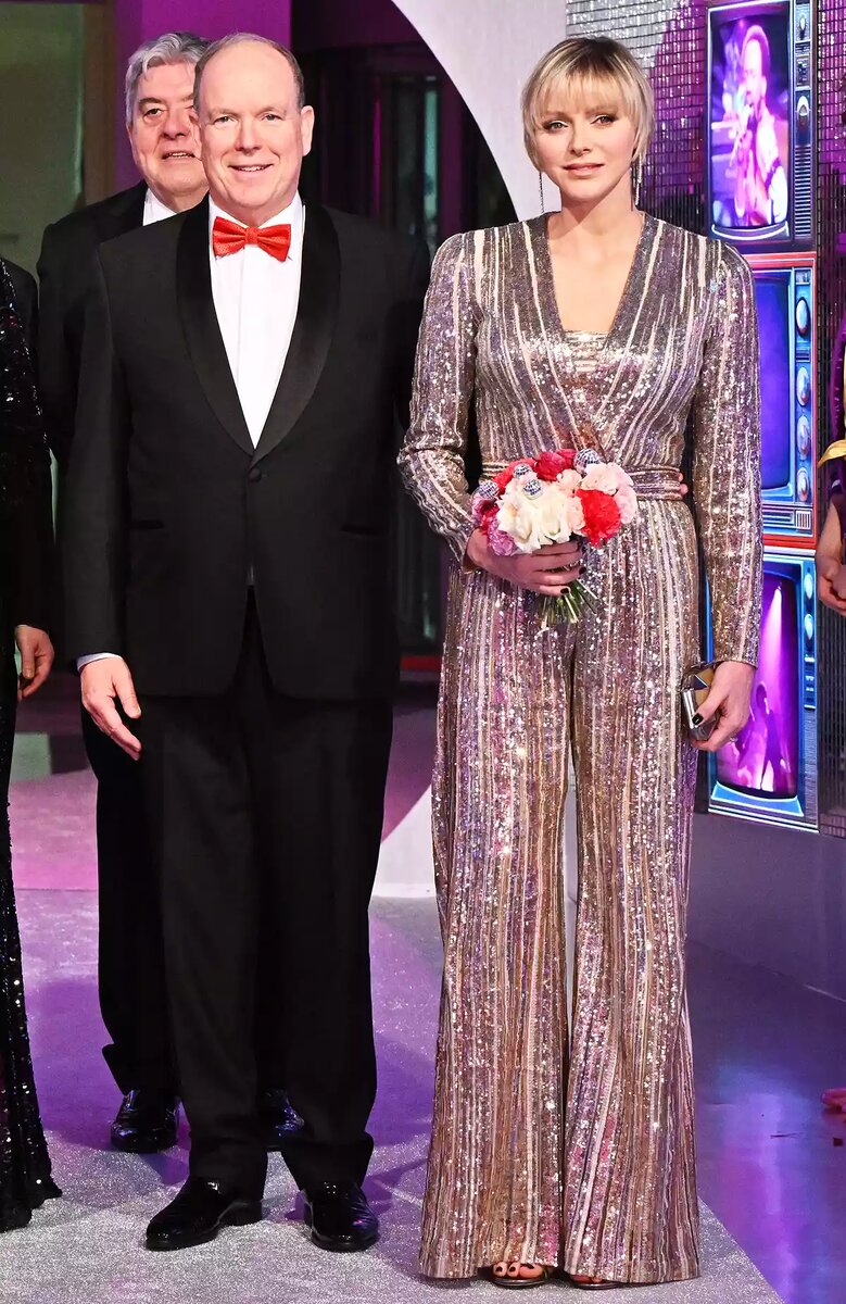 Да кто же у нее стилист? Княгиня Шарлен появилась на Балу роз в Монако в комбинезоне в стиле диско.