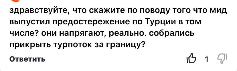Есть такое. Телефонные звонки весь день, лететь или не лететь? Это точно риск? Нас ведь предупредили, сидеть всем дома? Мои мысли по этому поводу. Привет! Это Елена и канал Заметки турагента. Турция, Египет и прочие страны 2024 Конкретного предостережения по конкретной стране не прозвучало. Например, как раньше, не посещайте Абхазию, потому что на свободу вышел осужденный за тяжкое преступление против россиянки. Или не посещайте Турцию, потому что в стране существует опасность терроризма. Или не посещайте Египет, потому что в Красном море много акул. Конкретной страны не назвали. Далее, в России проживают граждане, которые работают, например, в системе МЧС или МВД. Я довольно часто встречаю таких по работе. Как правило, эти люди четко знают, куда им можно лететь. Циркуляры выдают в начале года. Допустим, в Абхазию или в Сочи. Или во Вьетнам или на Кубу. Скорее всего, Речь шла о таких людях. Их еще раньше называли носителями государственной тайны. Они и их близкие должны "взвешивать ри