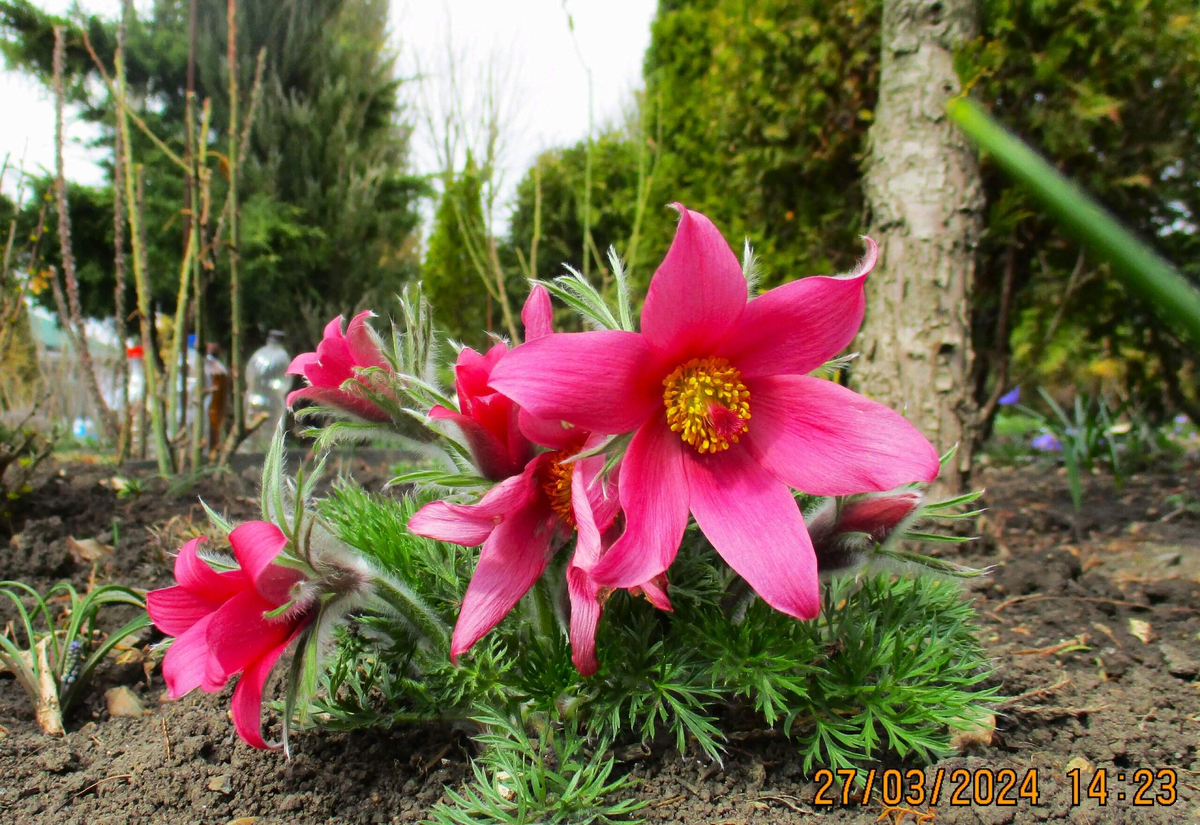Заканчивается март. В этом году март у нас холодный и прострелы начали цвести позже. Напомню, что мой сад находится в Краснодарском крае. Первыми начинают цвести старые кустики, которым уже 7-10 лет. На таких кустах бывает больше ста цветков. Хотелось бы увидеть цветение прострелов в ваших садах, которые вы вырастили из моих семян, и цветение кустиков прострелов, которые я вам высылала. Они могут быть самыми разными. За несколько лет, много высылала с бутонами, Даже не видела, как они цветут. Уверена, что там было много гибридов. Цветы на кустиках расцветают не все сразу , а постепенно. Здесь цветы и много бутонов. Не все сорта прострелов хорошо наращивают кустики. Этому уже 6-7 лет, а цветов на нём всегда мало. Обратите внимание на прострелы красных оттенков. Какие они все разные. Так же будет и у вас, кто заказывал смесь семян под № 1. По форме цветочков они тоже разные. Так же и по высоте они могут быть разными. Оттенок прострелов может быть другим. Это зависит от т