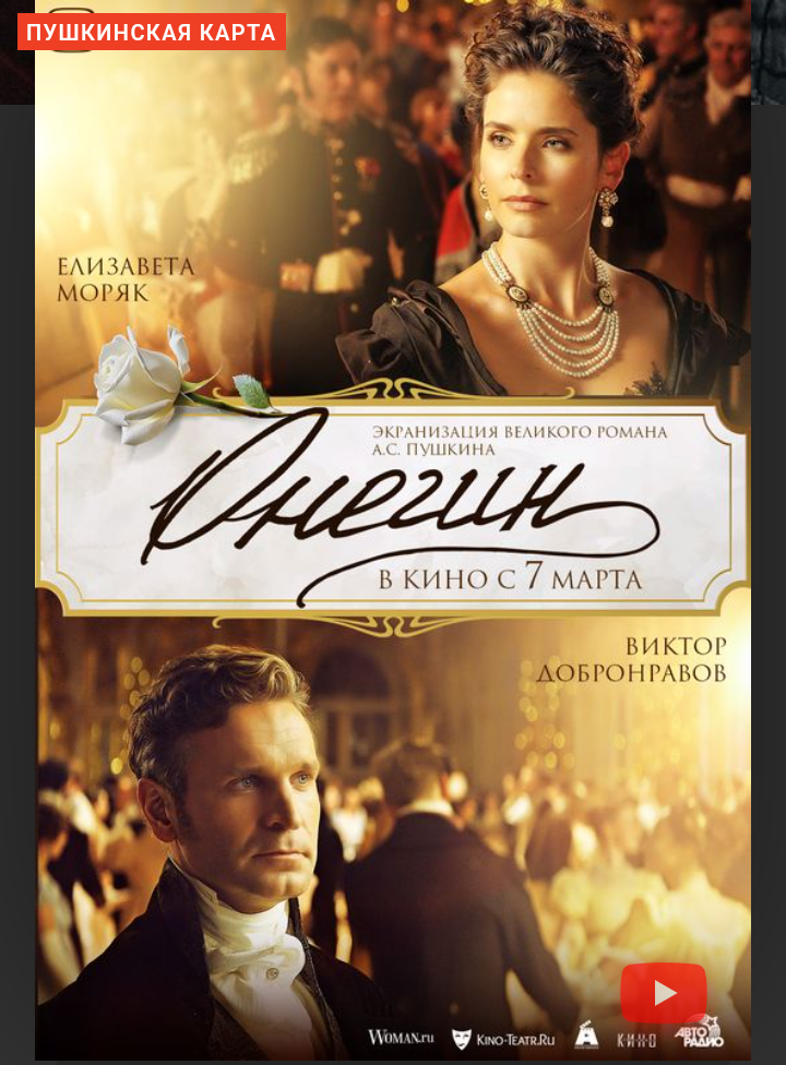 Я к вам пишу - чего же боле? Что я могу ещё сказать? Теперь, я знаю, в вашей воле Меня презреньем наказать. /из письма Татьяны Онегину/ Я всё-таки сходила на фильм "Онегин". Совпало всё - и время начала сеанса, и день, и погода... На 2 часа 20 минут я окунулась в эпоху А.С. Пушкина: балы, приёмы, пустые разговоры высшего света и, конечно, любовь. Поэтическая у Владимира Ленского, первая, чистая, глубокая у Татьяны Лариной и преступная, осознанная у Евгения Онегина... Жизнь молодого повесы в городе и деревне, детская влюбленность Ленского, первая судьбоносная встреча Татьяны и Онегина, мысли и чувства, обуревающие влюбленную Татьяну, "рождение" письма Онегину и муки в ожидании ответа, отповедь Онегина, тревожный сон Татьяны, хандра Онегина, дуэль, встреча Татьяны и Онегина спустя несколько лет, чувства, обуревающие влюбленного Онегина, "рождение" его письма Татьяне и муки в ожидании ответа, отповедь Татьяны, образ рассказчика, читающего знакомые строки великого романа А.С. Пушкина...