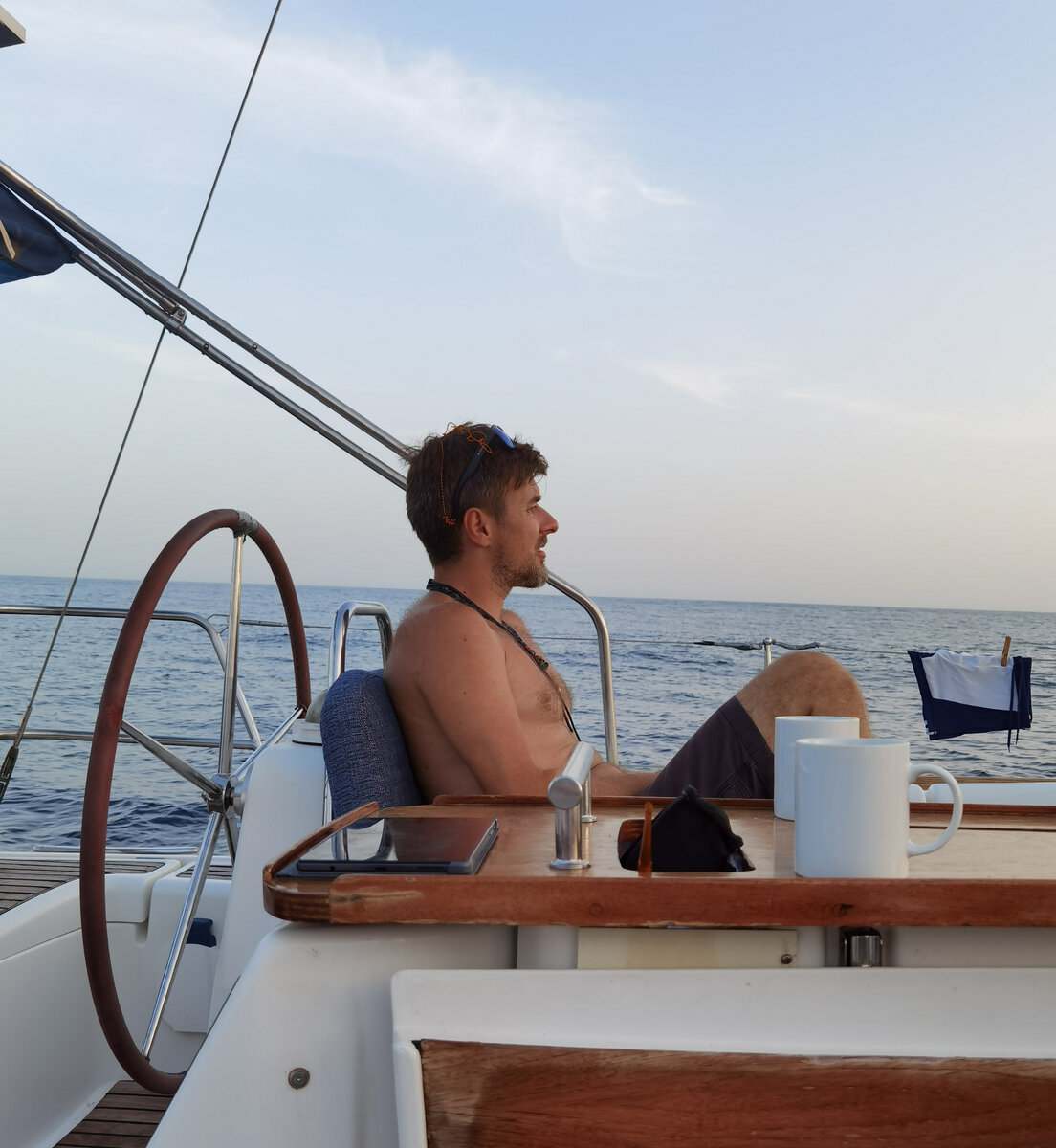 Очень круто сидеть на носу с креном на скорости в 7 узлов, опустив ноги, когда волна окатывает их по колено.
