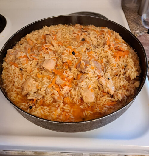 Плов - это вкусное и насыщенное блюдо, которое можно приготовить с различными ингредиентами, но вот классический рецепт узбекского плова: Ингредиенты: · Рис - 2 стакана · Говядина или баранина (на ваш выбор) - 500 г · Лук - 3 шт · Морковь - 2 шт · Растительное масло (лучше всего сливочное) - 1/2 стакана · Соль - по вкусу · Перец - по вкусу · Вода - около 4 стаканов Инструкции: 1. Подготовьте мясо, нарежьте его кусочками среднего размера. Лук нарежьте полукольцами, морковь - соломкой. 2. В глубокой сковороде или казане разогрейте масло. Обжарьте лук до золотистого цвета. 3. Добавьте мясо и обжаривайте его до появления коричневого оттенка. 4. После этого добавьте морковь и продолжайте жарить все вместе, пока морковь не станет мягкой. 5. Залейте содержимое сковороды водой, доведите до кипения и варите на среднем огне, пока мясо не станет мягким. 6. Пока мясо варится, промойте рис несколько раз в холодной воде до тех пор, пока вода не станет прозрачной. Откиньте его на дуршлаг и дайте сте