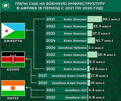 Важно отметить, что добиться результата американцы стремятся ЛЮБЫМИ средствами, вплоть до выдавливания вооружённых сил своих сателлитов (в частности, Франции) из регионов, в которых они располагались десятки лет, с последующим размещением здесь своих военных баз (в частности, для размещения разведывательных и ударных БПЛА).