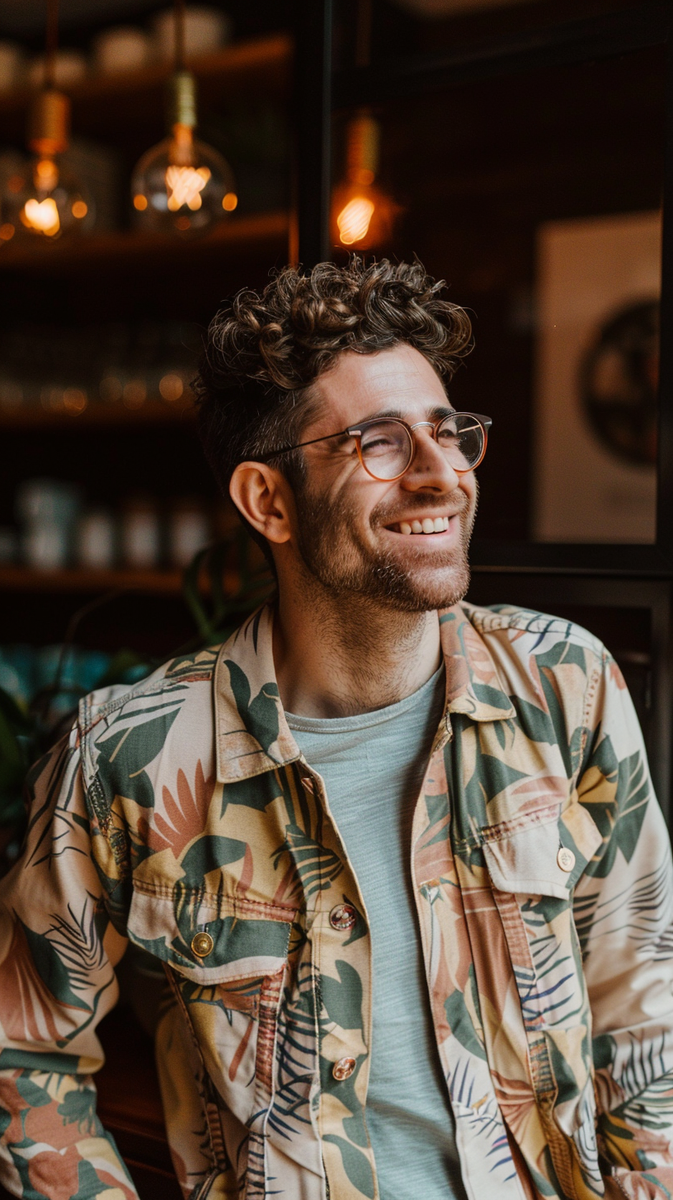 4. Часть 3 (7 секунд): Третий клиент скептически относится к своему стилю (“слишком обычный/экстравагантный”). Стилист демонстрирует, как смешивать базовые и яркие элементы гардероба, чтобы создать гармоничный и уникальный образ.