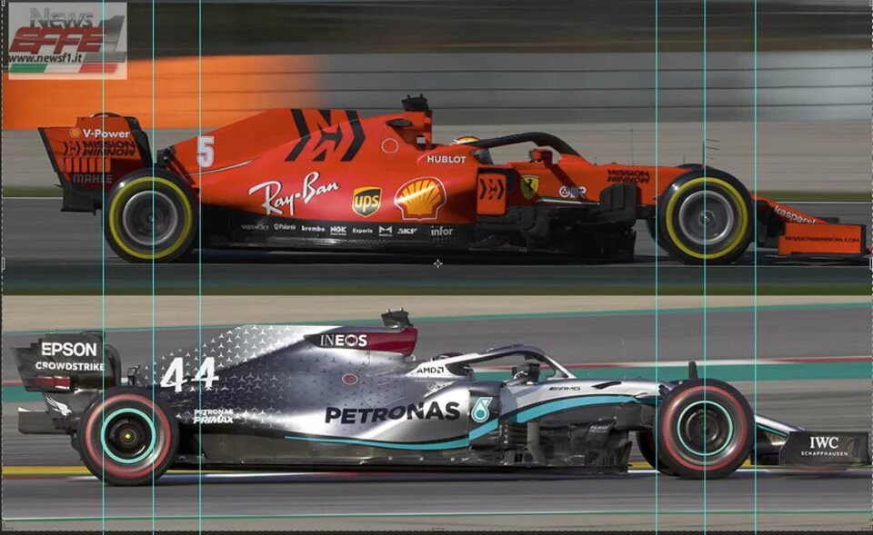 Различия между Ferrari и Mercedes Теперь, когда тесты Формулы-1 завершены, мы смогли сделать первые выводы, пусть и незначительные, о возможной философии дизайна, а также о принятых решениях, которые привели к важным различиям между командами. В частности, в этой статье речь пойдет о Ferrari и Mercedes. В основном мы получили три сравнительных изображения, которые объясним максимально просто. Как показано на изображении выше, первым важным отличием является колесная база, т.е. расстояние между осями, или расстояние между центрами колес (передних и задних). Конечно, между двумя фотографиями есть ошибка не идеального выравнивания, однако легко понять, как даже при малейшей ошибке на самом деле существует разница в расстоянии между осями передних и задних колес двух соперников. Ferrari выбрала более короткую колесную базу, которая обеспечивает большую маневренность среди преимуществ, а также, вероятно, меньший вес, поскольку физически меньше «материала». Например, более длинное тело автом