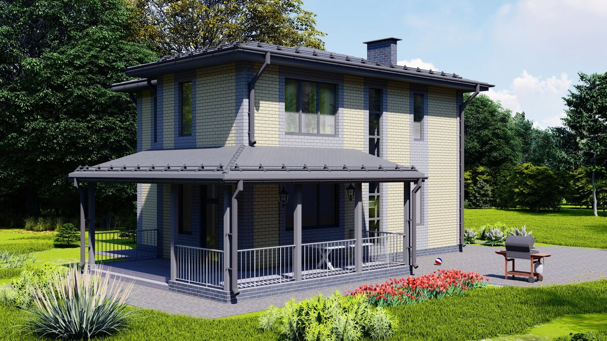 Иногда приходится делать вообще удивительные проекты, когда заказчик приглашает архитектора только после того, как у него на участке уже есть залитый бестолковый фундамент и закуплен кирпич двух цветов. Можно сказать, что это тот редкий случай, когда получилось из ..... сделать конфетку. Хотя в проекте осталось много несуразицы, так как вся планировка привязывалась к закладным в плите фундамента, от которых избавиться и перенести не представлялось возможным. На фотографиях можно увидеть и проектную визуализацию и уже построенную коробку дома. Терраса будет на винтовых сваях с будет пристраиваться позже.