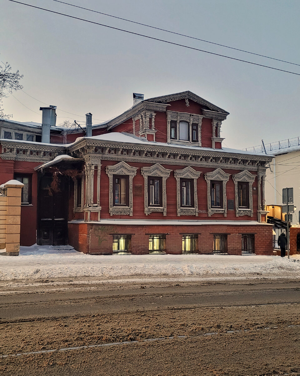 Возвращаемся в Нижний. Я в последний приезд наконец исполнила свою давнюю хотелку — исследовала улицу Ильинскую. Узнала о ней благодаря своей коллеге-подруге Лене, которая живёт в этом городе. Вместе и прошлись там — вечером. А потом ещё отдельно... ...вернулись днём с сыном, чтобы посмотреть то, что в темноте плохо было видно. Поэтому на фото то светло, то мрачновато — прогулка была долгой))) Вот она со всеми адресами. Для начала дом купцов Лошкарёвых — Ильинская, 49. Деревянная классика — вся в кружевах. И это удивительно — в XIX веке на этой улице было принято строить из камня. В чём мы с вами дальше и убедимся. Напротив через дорогу... ...особняк судостроителя Сироткина — Ильинская, 46. Тут уже модерн — одно из первых зданий в городе в этом стиле. Но сейчас сильно перестроено под нужды гостиницы. На этой же стороне улицы моя любовь — усадьба купчихи Рябининой. Дом 56. Да, это самая настоящая городская усадьба — большой комплекс, который начал свою историю в XVIII столетии. За это