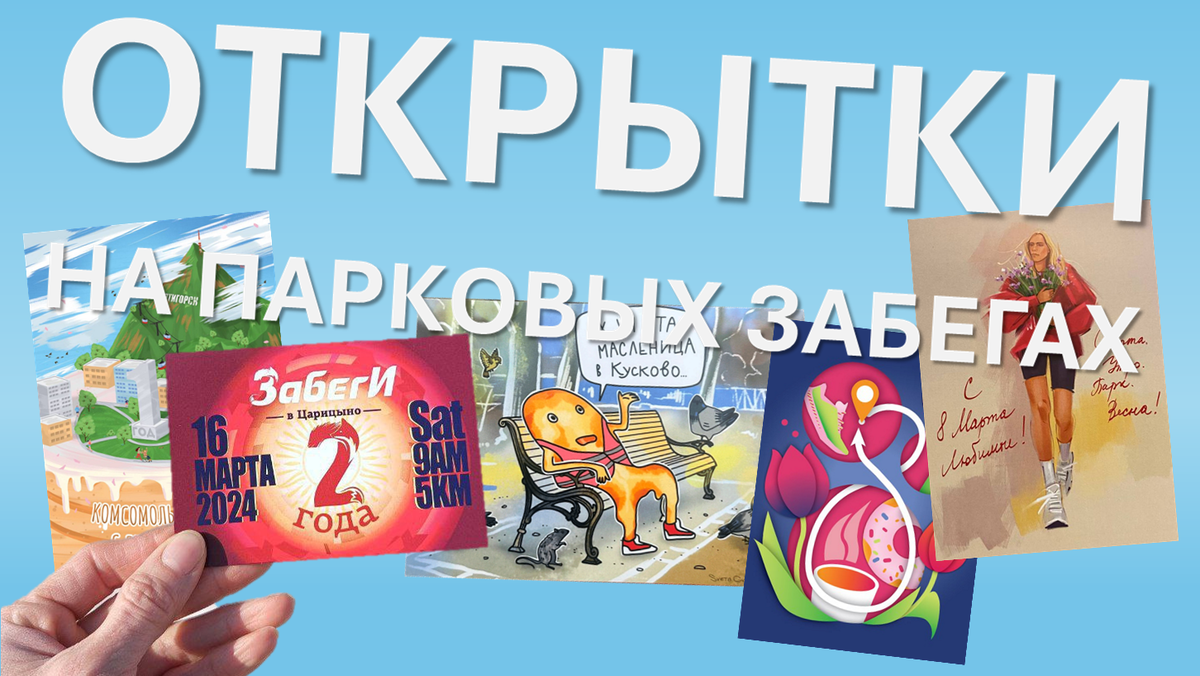 Заканчивается 3-й месяц паркрановской жизни в 2024 году и мы собрали некоторые открытки, которые увидели у движений или отдельных команд на тематических забегах. Какие-то из них использовались как токены ,а какие-то послужили сувенирами и приятным дополнением к лучшему началу выходных. На дополнительный старт 1 января 5 вёрст в Пестовском сделали двойную открытку. Что-то похожее было в Кузьминках на Забеге Маяков летом 2023, когда 2 открытки, соединяясь, образовывали единый рисунок. Открытка перед фан-раном марафона Дорога Жизни.