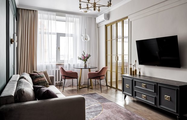 С помощью грамотной перепланировки удалось превратить сталинскую двушку в трешку с отдельной кухней, гостиной, изолированной спальней, детской и гардеробной Дизайнер интерьеров Ксения Шахматова всего за 3 месяца превратила старую двухкомнатную сталинку в комфортную трешку для мамы travel-блогера и пятилетней дочки. Кстати, дизайнер и заказчица до передачи ключей никогда не видели друг друга. Главным пожеланием заказчицы был быстрый ремонт квартиры под ключ без ее участия. Для Ксении этот проект стал первым опытом дизайна интерьера для жизни (ранее были квартиры под флиппинг и инвест-ремонты). В старой двухкомнатной сталинке 64 кв.м за 3 месяца был сделан капитальный ремонт с перепланировкой. Выделены 2 изолированные спальни, гостиная, комфортная кухня, зона прачечной и гардероба. Газифицированную кухню отделили стеклянной перегородкой, спальню и детскую — стеной из стеклоблоков, а зону санузлов и постирочной объединили общим коридором. Фишками в интерьере стали: Если вы хотите стать ге