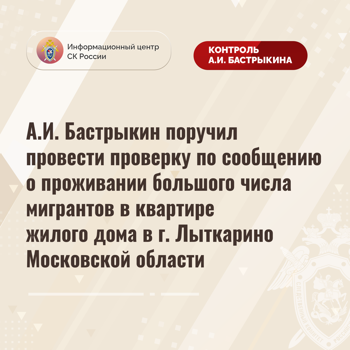 А.И. Бастрыкин поручил провести проверку о проживании большого числа мигрантов в квартире жилого дома в г. Лыткарино Московской области