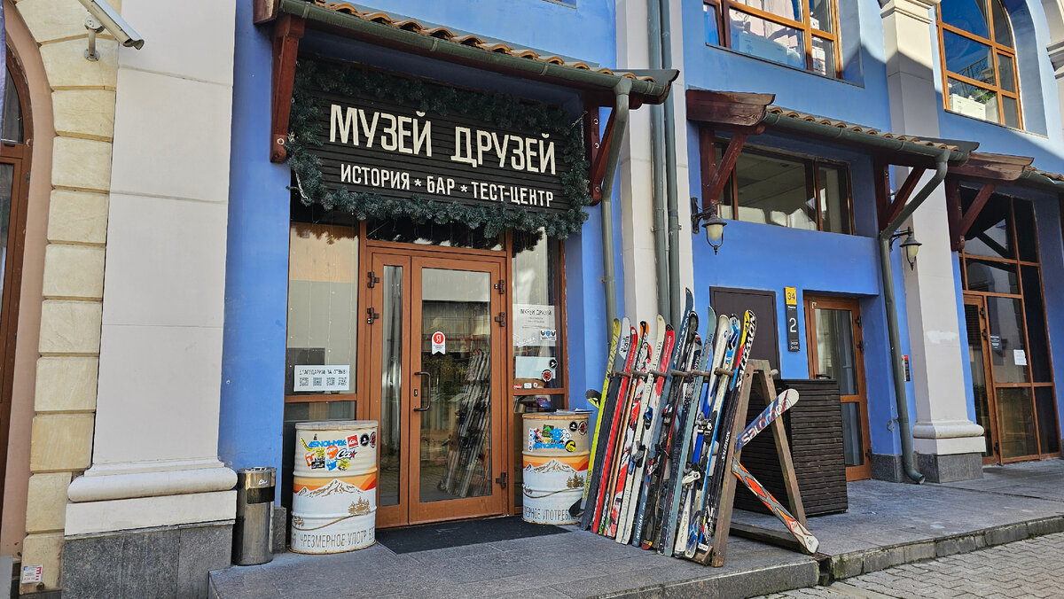 «Музей друзей» находится по адресу: село Эстосадок, ул. Горная карусель, 5 (около ТРЦ Горки Молл) в уютном дворике. «Музей друзей» открылся в Красной Поляне в 2019 году. Это пространство, построенное вокруг сообщества людей, которые создавали и продолжают создавать историю горнолыжного спорта и отдыха в стране. На официальном сайте музея заявлено, что Музей друзей — это антимузей! Здесь собираются единомышленники, обсуждая лучшие катальные дни и строя планы на будущее. Здесь можно смотреть кино о горах и не только, устраивать вечеринки, слушать музыку и просто отдыхать. В Музее Друзей можно перекусить, выпить лёгкие и не очень алкогольные напитки ( по сути это бар). Музейным предметом является сама история развития горнолыжного спорта и сноуборда и строительства курортов в России, которая будет интересна всем посетителям. Подкупает тематическое оформление бара с пола до потолка. Здесь нет ни одного пустого места, или места, не посвящённого истории лыжного спорта. Под стеклом столи