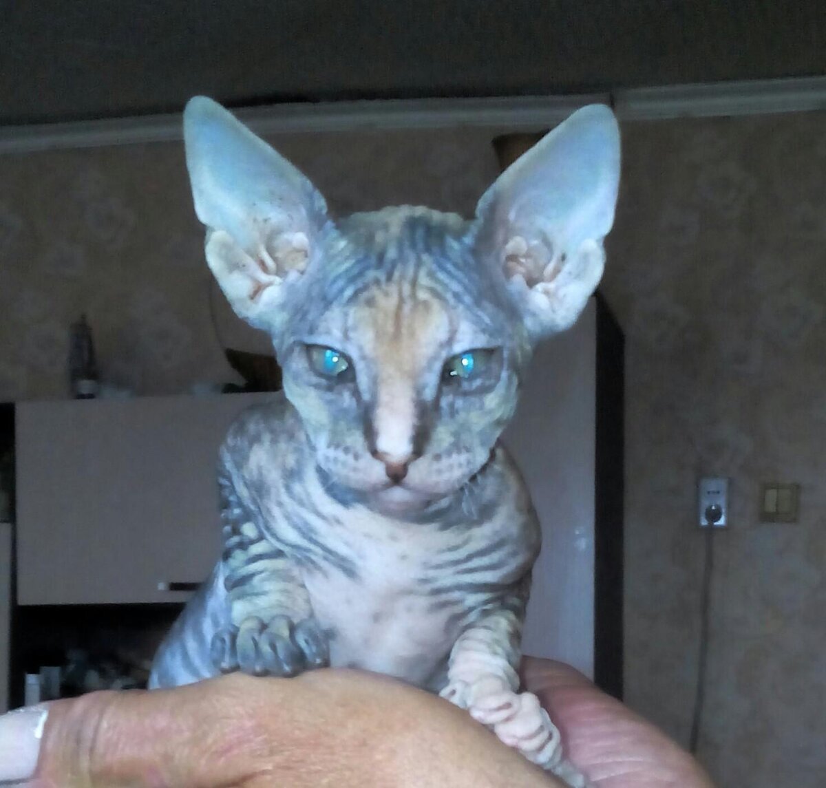 Кто из Вас, читающих эти строки, имел на содержании Донского сфинкса? Поделитесь, о чём подумали, впервые увидев это творение Божье. Моё первое впечатление - ,,Господи! Велики деянья Твои! Это что же такое безволосое?" Но потом разглядел, что и не безволосое вовсе, а замшевое, восхитительно мягкое на ощупь и очень горячее. Интернет услужливо подсказал, что температура тела у Сфинксов обычно 39,5 градусов. Для нас, с нашими 36,6, они всегда будут ,,горячими".