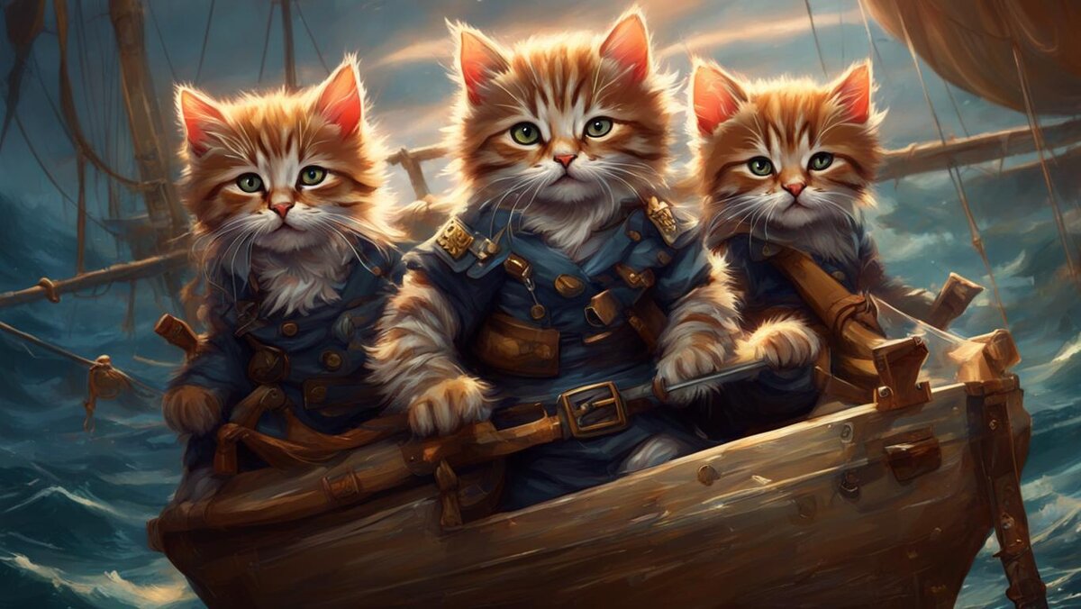 В это время, в укромном уголке на камбузе, Алиса родила котят. Пять маленьких комочков мгновенно стали всеобщими любимцами. В столовой, для Алисы и её «алисят», поставили коробку со всяким тряпьём, куда кошка быстренько перетащила всё потомство.