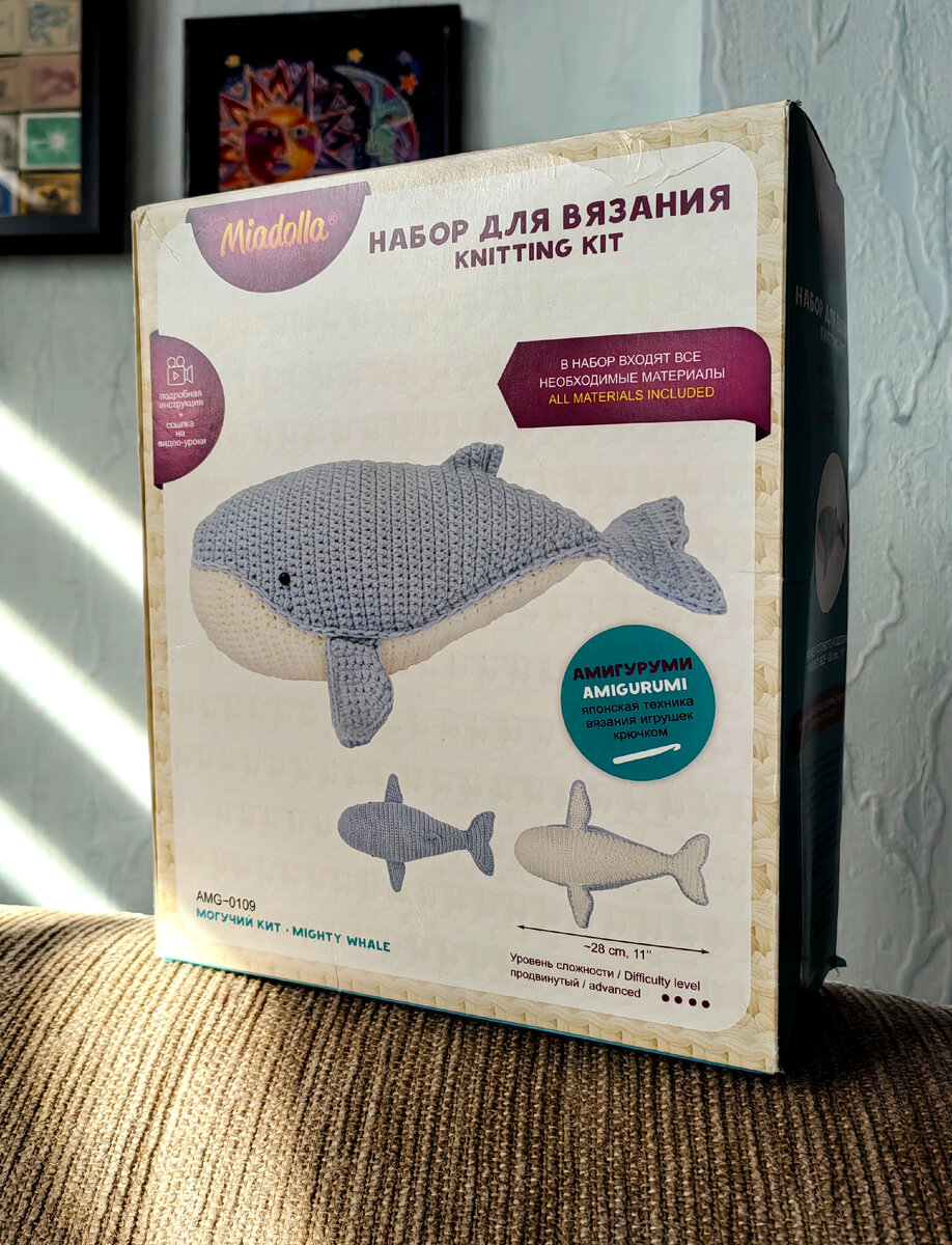 Приветствую, друзья! Моя активность на просторах дзена снизилась в последнее время, но я продолжаю потихоньку рукодельничать 😊 Как и прежде буду рассказывать и показывать вам свои результаты. Сегодня есть, чем похвастаться 😋 я доделала китёнка! Но обо всем по порядку! Ещё в прошлом году я озадачилась вопросом, что хочу попробовать связать игрушку крючком. Мой опыт в вязании предельно мал - помню, были занятия еще в школьные годы, вязали и крючком, и спицами, и макраме было... Всего по чуть-чуть😁 во взрослом возрасте пыталась вязать шапку и шарф, но так и не завершила эти изделия. Поэтому самым оптимальным для меня вариантом я посчитала - купить набор. Чтобы и инструкция была и все необходимые материалы в нужном количестве. Набор выбирала долго... Откровенно говоря, из имеющегося ассортимента все игрушки очень простые и детские. В итоге купила набор от Миадолла "могучий кит", здесь уровень сложности - продвинутый 😎 он самый сложный из серии. И самый большой по размеру - 28 см