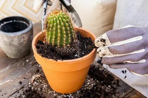 - Аккуратно выньте кактус из старого горшка, стараясь не повредить корни. Если корни сильно переплетены, можно использовать нож или ножницы, чтобы их разделить.