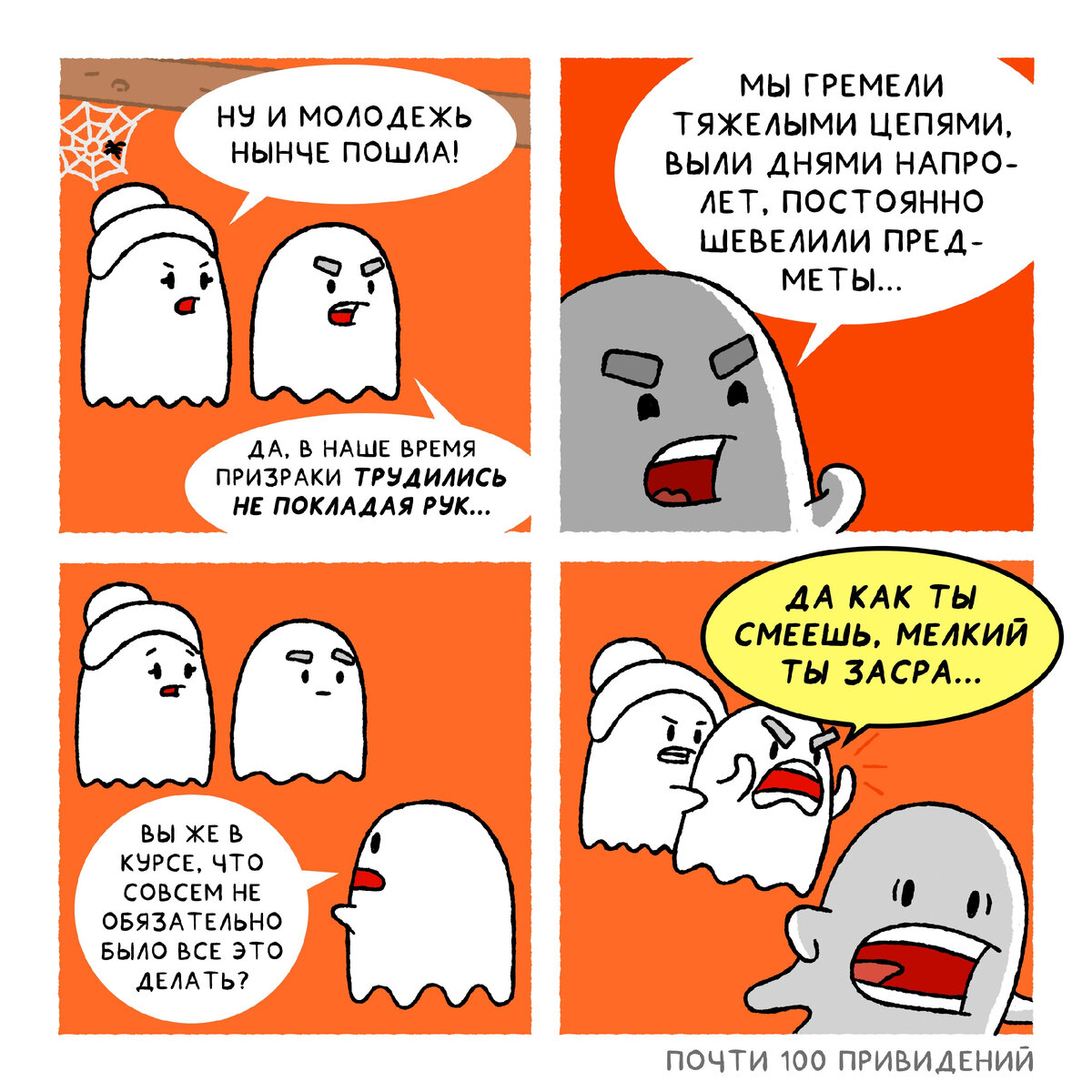 «Почти 100 привидений» - 10 смешных комиксов про призраков, которые показывают фокусы, захватывают тела и узнают правду о себе