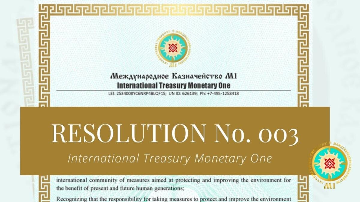 13. Control over the implementation of this Resolution No. 003 is entrusted to the Department of special programmes and projects of the International Treasury Monetary One.