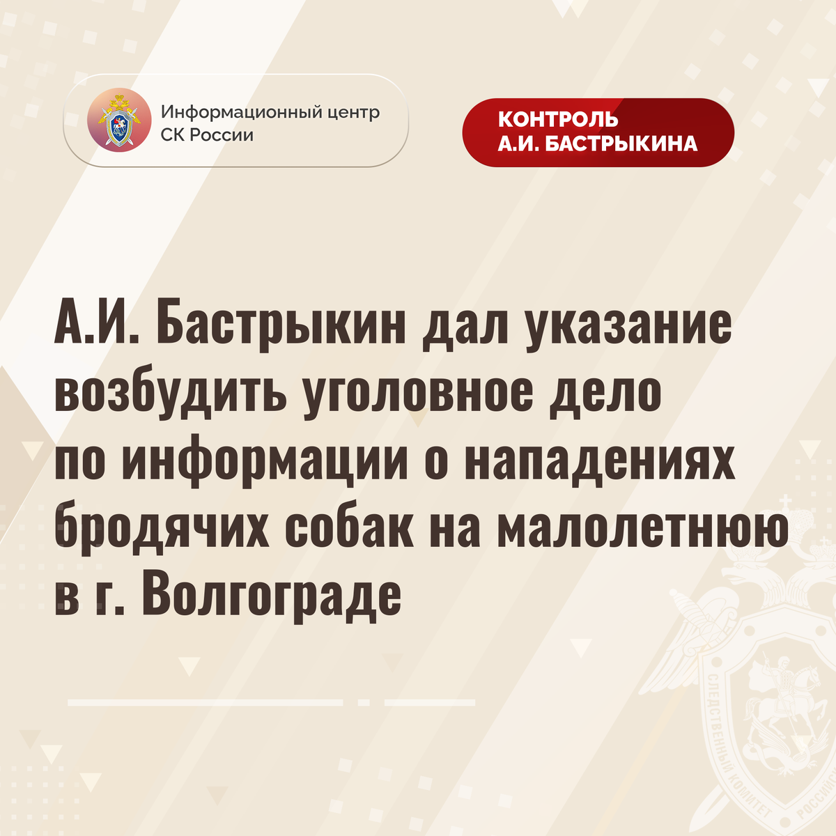 А.И. Бастрыкин дал указание возбудить уголовное дело по информации о нападениях бродячих собак на малолетнюю в г. Волгограде