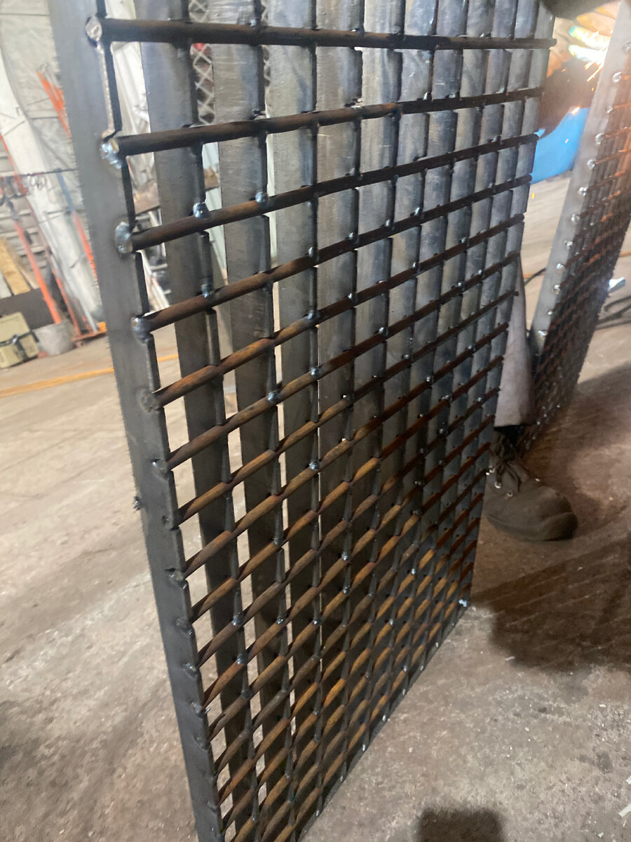 Производство металлических решеток различных размеров для чистки ног на заводе МосУдарник