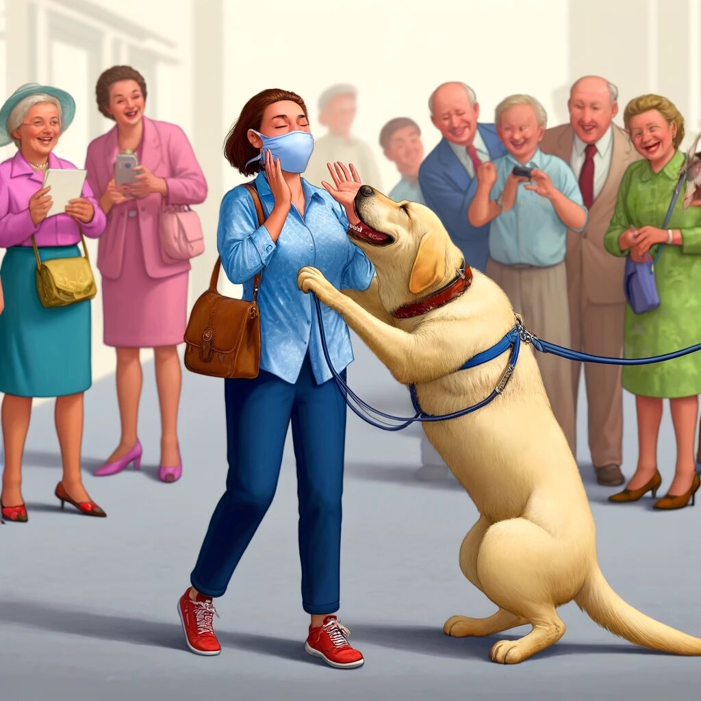 А другой случай был с собакой Лабрадором. Животные каким-то образом чувствуют благодать божью и идут за благословлением ко мне. Кошек я конечно большн люблю, но и собак благословляю, куда уж теперь деваться. Однажды дело было в пандемию, когда нужно было носить эти дурацкие маски, иду я с работы и тут позвонила мне мама, а рядом хозяинвыводил большого лабрадора. Похоже, он сразу почувствовал во мне что-то особенное, что привлекло его внимание. Лабрадор, с энтузиазмом и явной радостью, принялся облизывать меня, словно хотел показать свою любовь и привязанность. Маска очутилась у меня на глазах и я ничего не видела. Хозяин собаки пытался его оттащить, но лабрадор был неудержим в своем желании продемонстрировать мне свою ласку. Я не могла удержаться и, улыбаясь через слои слюней, молила о благословении для этого чудесного существа. "Простите, извините," - говорил хозяин, пытаясь оправдаться за поведение своего питомца, в то время как я, окруженная вниманием и лаской лабрадора, чувств