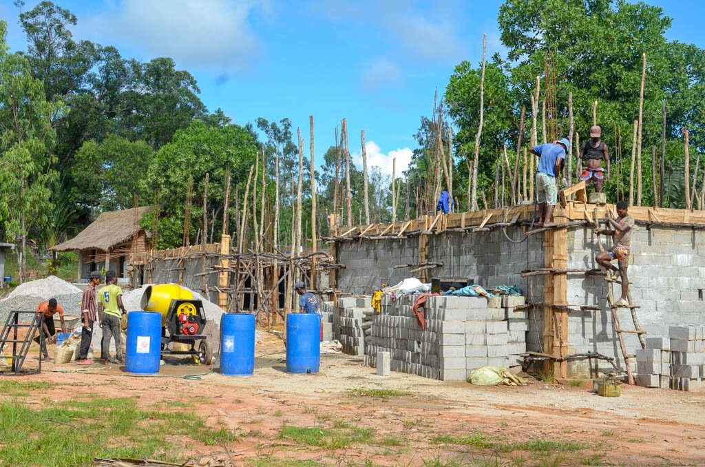 Для ускорения процесса купили бетономешалку и вибратор. Все остальное как и прежде - ручками
