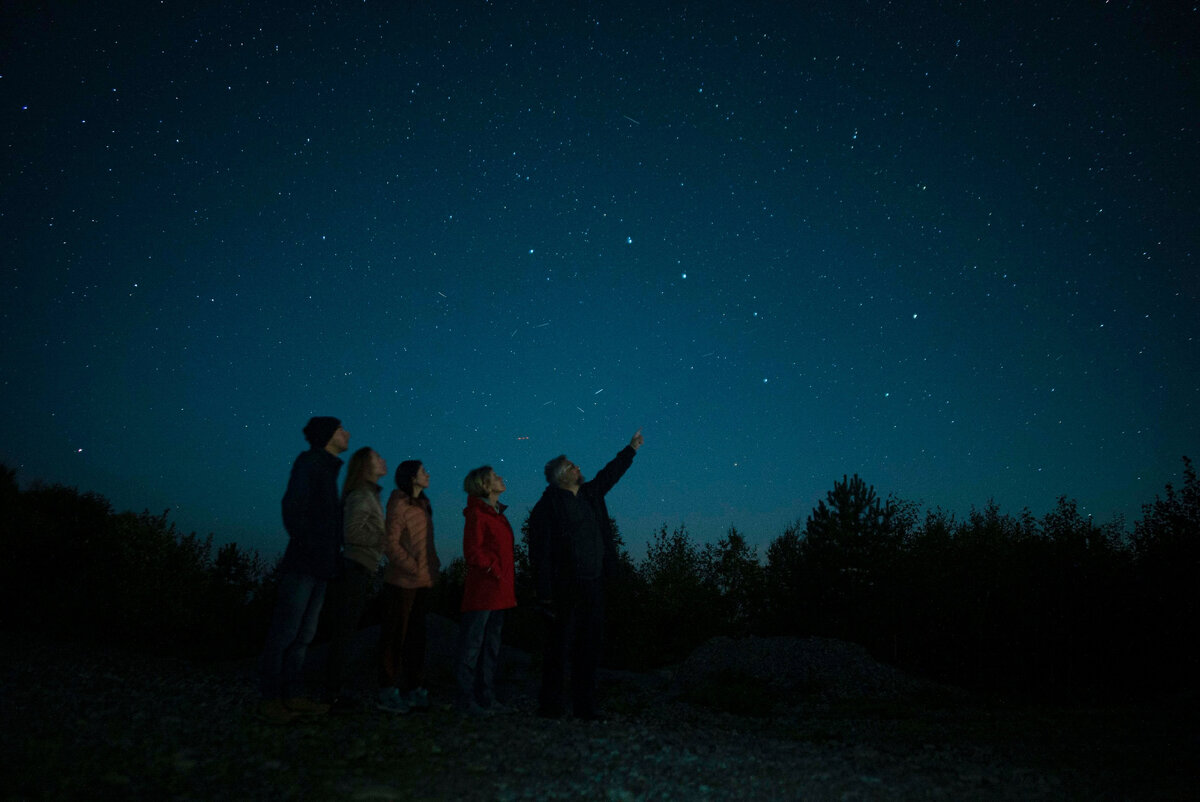 Теперь опустите взгляд от звезды вертикально вниз, к земле — это и будет направление на север. Если вытянуть руки в стороны, то получите запад (слева) и восток (справа), а позади вас будет юг.