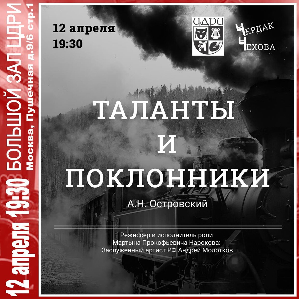 12 апреля, пятница 19:30 — Большой зал ЦДРИ «Таланты и поклонники» А.Н. Островский