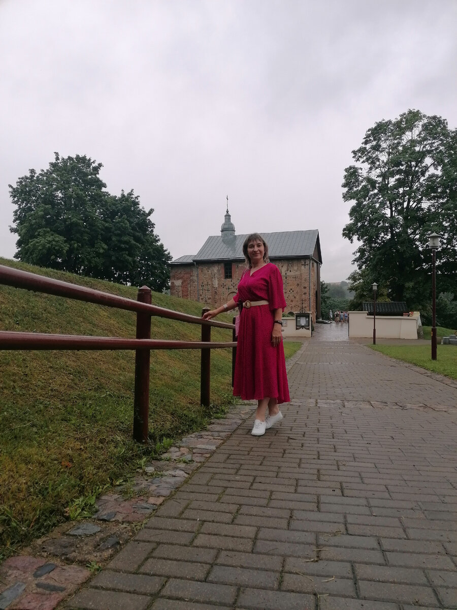 Путешествие в Беларусь не ограничилось Минском. Планов было много. В том числе - обязательно побывать в Гродно. Наслышана была, что Гродно-необычный город, такой вот европейский островок в Беларуси. И вот мы едем из Минска в Гродно, рассматривая ухоженные поля, любуясь аистами, которые ещё не улетели (к нашей радости) и молясь, чтобы не было дождя, и он не помешал нам осмотреть достопримечательности. Дождь всё же пошёл, поймал нас прямо на подъезде к Гродно. Но довольно быстро закончился, оставив после себя лужи, мокрую траву и невероятный, упоительный запах свежести. И вот мы на крутом берегу Нёмана, а перед нами чудо-чудное - Борисоглебская (Коложская) церковь - одна из древнейших сохранившихся церквей Древней Руси. Точная дата постройки не известна. В одном из источников назван 1180 год. Идём по дорожке к церкви. Красота вокруг невероятная. Сверху открывается потрясающий вид на Нёман. Уже издалека видно, что постройка необычная. Церковь сложена из плинфы (тонкий обожжённый