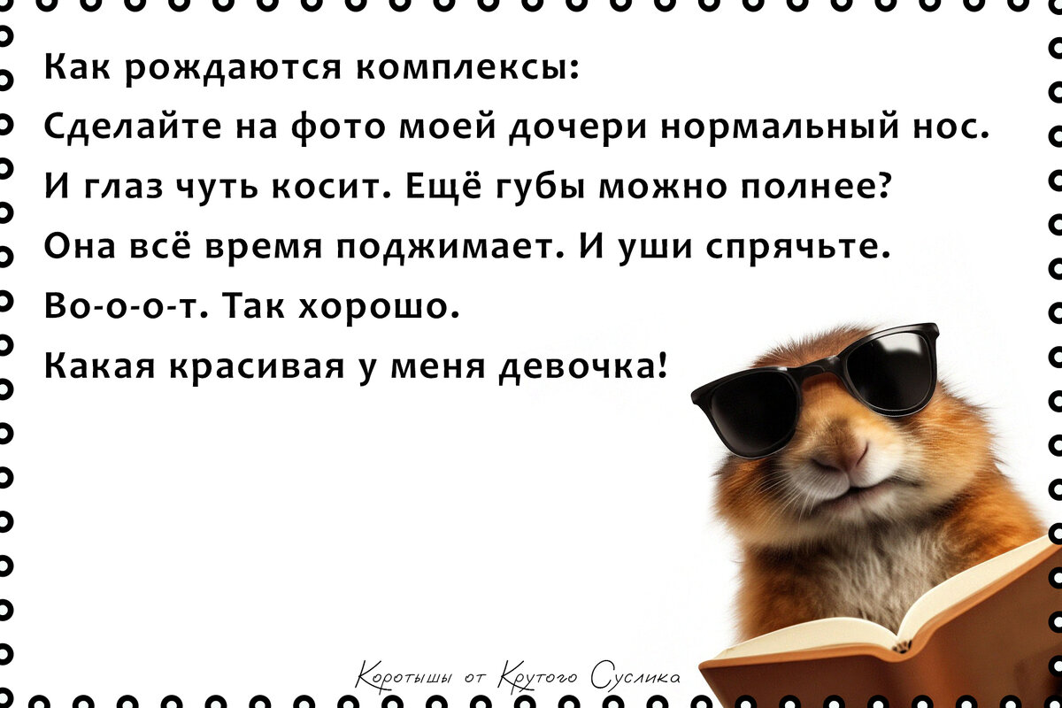 Вася питался яблоками и морковкой. А в выходные устраивал разгрузочный день, питаясь энергией солнца. Вася до сих пор не понимает, отчего ушла жена. А жена не понимает, каким домкратом поднять Васину морковку *** Наглость клиентов: — Можно я тут присяду? — А можно посмотреть, как вы работаете? — А за грудь потрогать можно? *** — Мы с тобой как Инь и Янь! — Скорее, как Синь и пьянь. *** Разговор вегетарианца с мясоедом: — Ты точно мясо не ешь? А варёное? А курицу? А если я попрошу? — Фу, с тобой даже поговорить не о чем.
