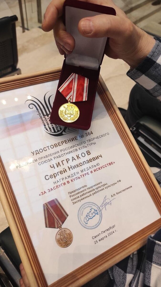 И полетят тут телеграммы родных и близких известить. Чиж получил медальку за заслуги в искусстве