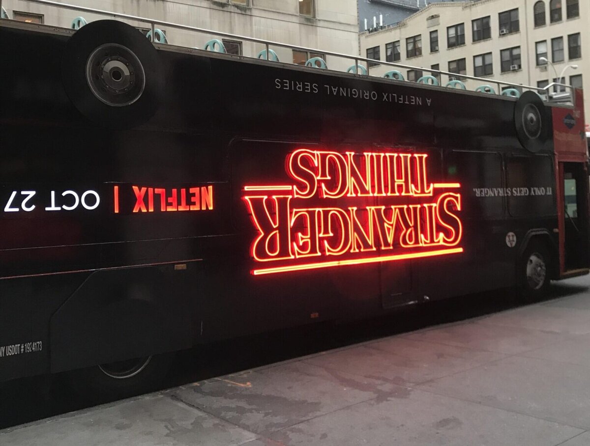 Из нашего блога вы уже многое знаете о рекламе внутри транспорта, но что насчет того, чтобы сделать ее снаружи? Буквально картинку на автобусе. Наверное, вы бы и сами захотели прокатиться на подобном транспорте, являясь не только зрителем, но и, по сути участником кампании. В этой подборке мы рассмотрим интересные кейсы рекламы на автобусах. Netflix Stranger Things - один из самых известных проектов от Netflix.Наверное, никто не ожидал того, что для рекламы сериала перевернут целый автобус. Но это иллюзия. Конечно, на нем можно прокатиться. Присмотритесь внимательнее к фото: перевернутый автобус - лишь инсталляция на реальном. Однако такая реклама прекрасно заменяет гигантский рекламный щит! Сникерс Как там говорится? - ты не ты, когда голоден? В этой забавной рекламе от Сникерс мужчина гонится за задней частью нью-йоркского автобуса, пытаясь поймать свой любимый шоколадный батончик. Эта реклама от Сникерс - способ показать, что иногда всем нам нужен просто перерыв, чтобы насладится лю